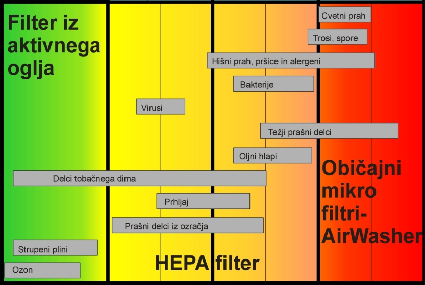 način filtracije za njihovo odstranitev iz zraka.